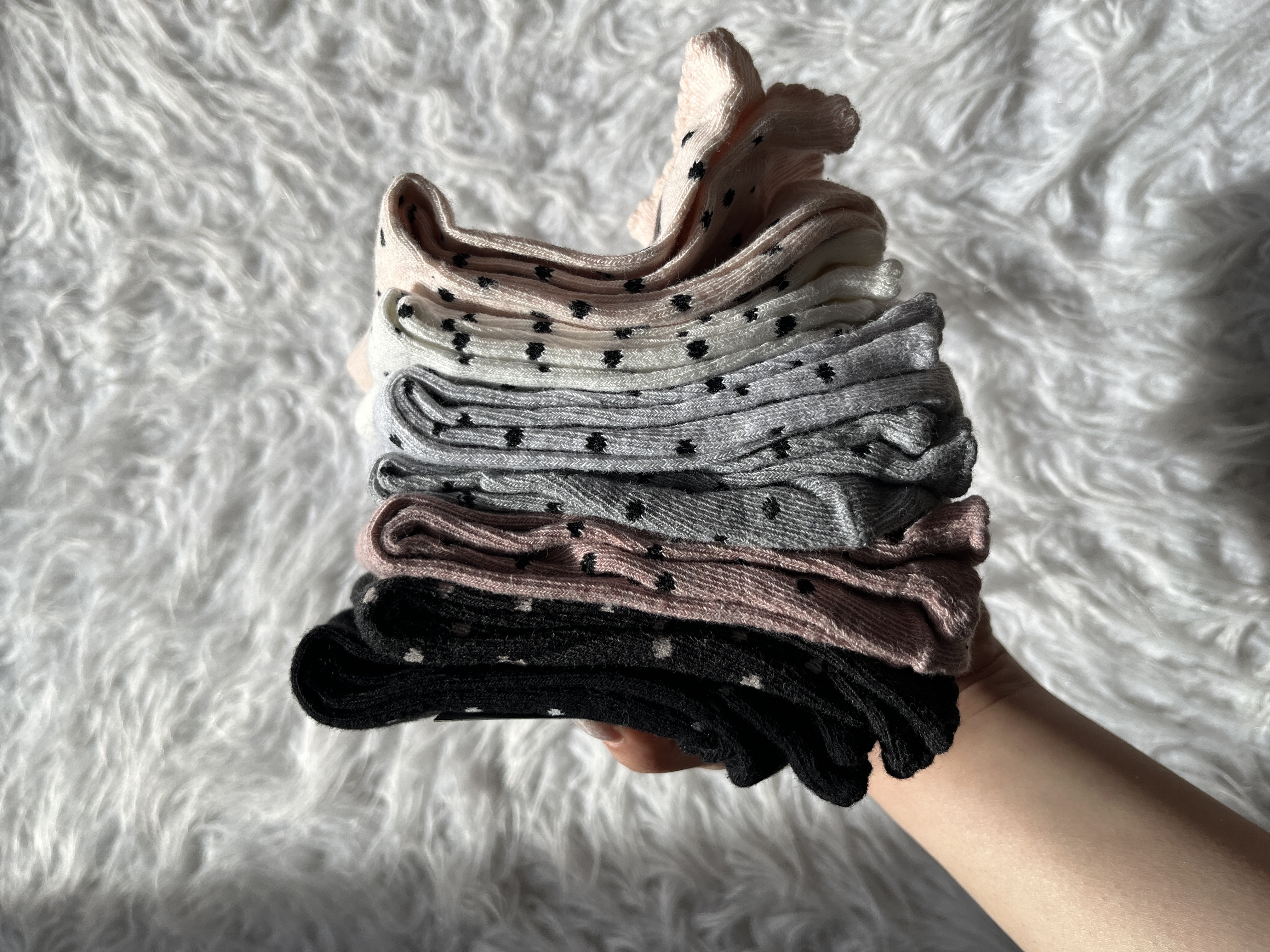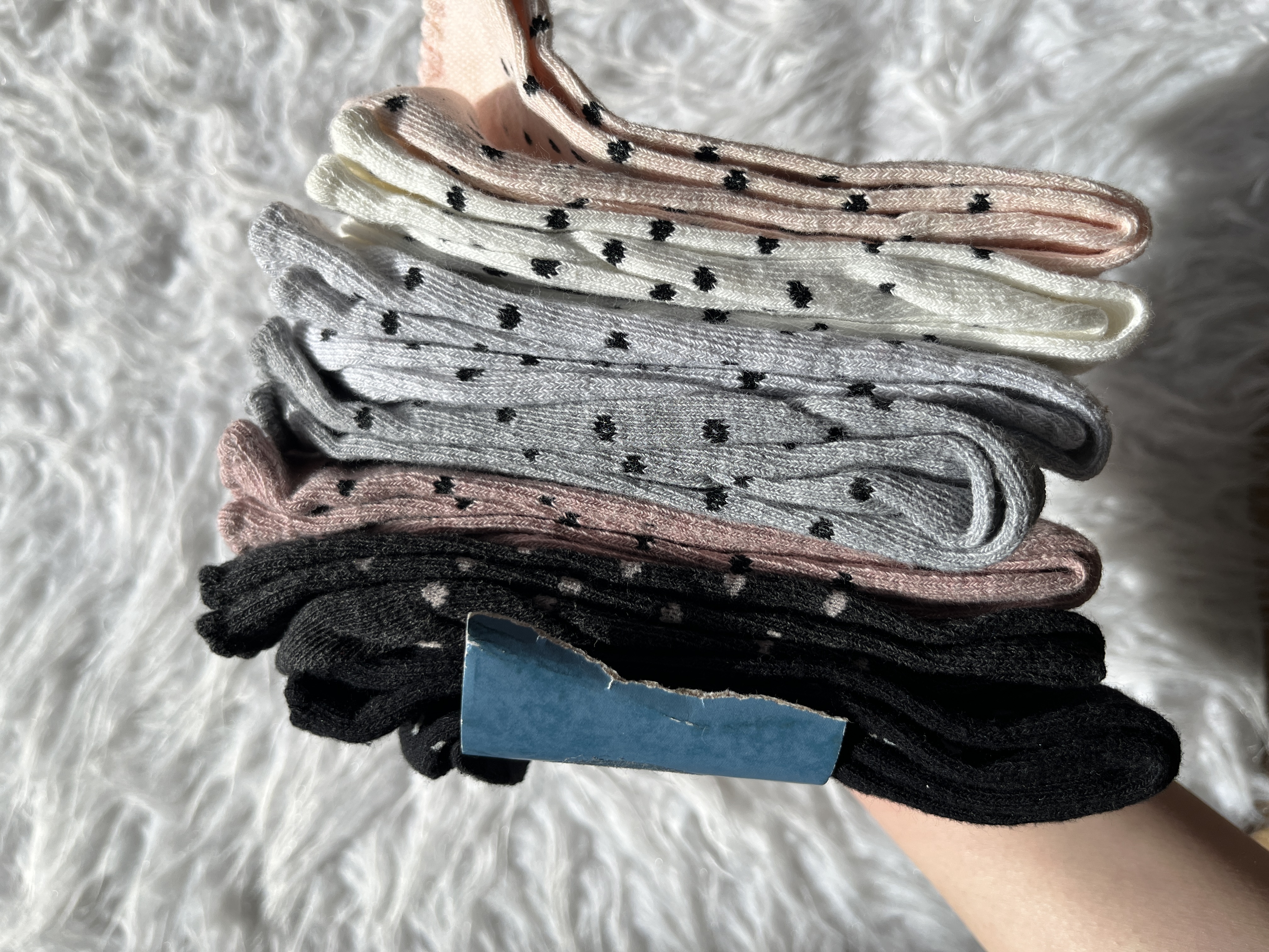 دستهبندی: جوراببرچسبها : جوراب بچه گانه، جورابجنس: نخ پنبهطرح و رنگ: کالباسی، سفید طوسی،زغالی،صورتی موشکی با طرح خال خالیمدل: ساق بلند