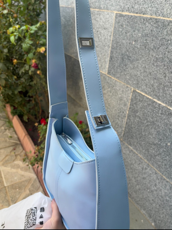 این کیف دوشی زنانه آبی پاستلی با طراحی مینیمال و بند قابل تنظیم انتخابی عالی برای استایلهای روزمره و مهمونیه سبک شیک و همیشه ترند مناسب برای دخترایی که دنبال کیف شیک و خاص هستن