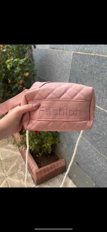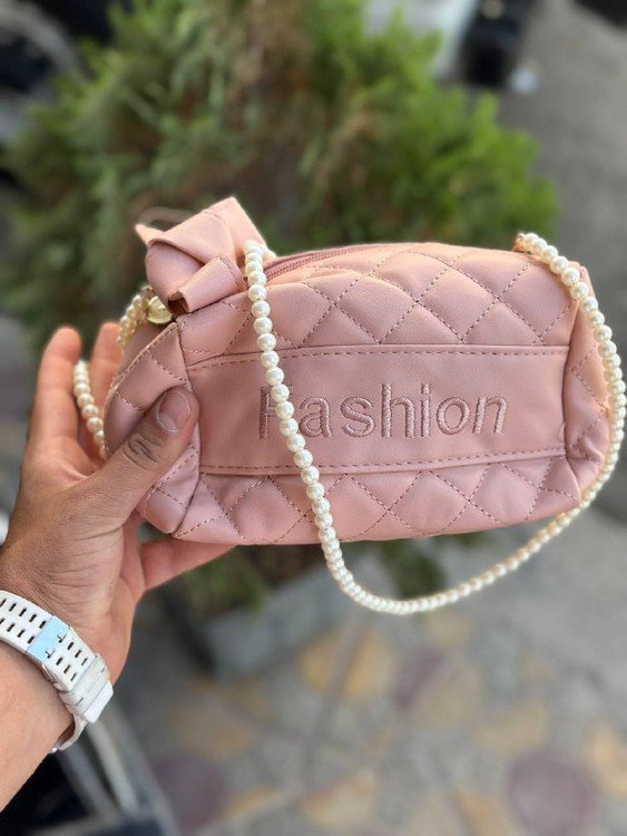 کیف صورتی فشن چک پوینت با بند مرواریدی زیبا مناسب استایل های ناز و شیک